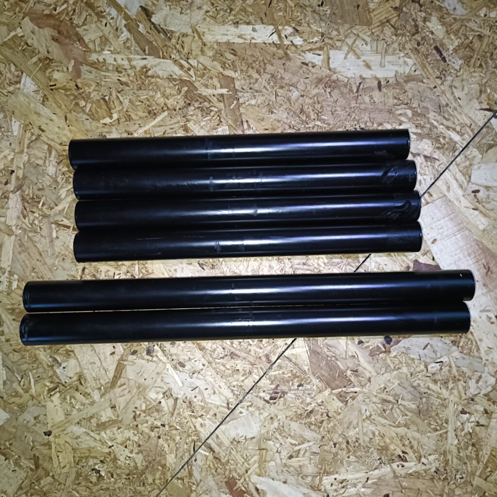 足のパーツに滑り止めをつけます。 先程用意した40cmのパイプ2本を取り付けます。 枠組みが出来たら足部分30cmを4本を取り付けます。