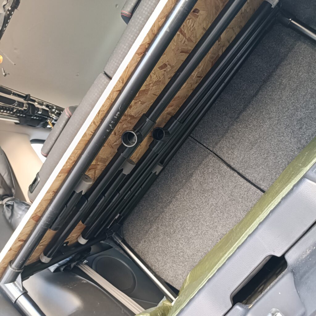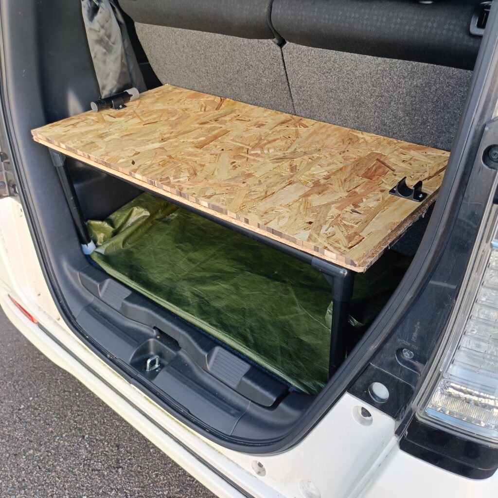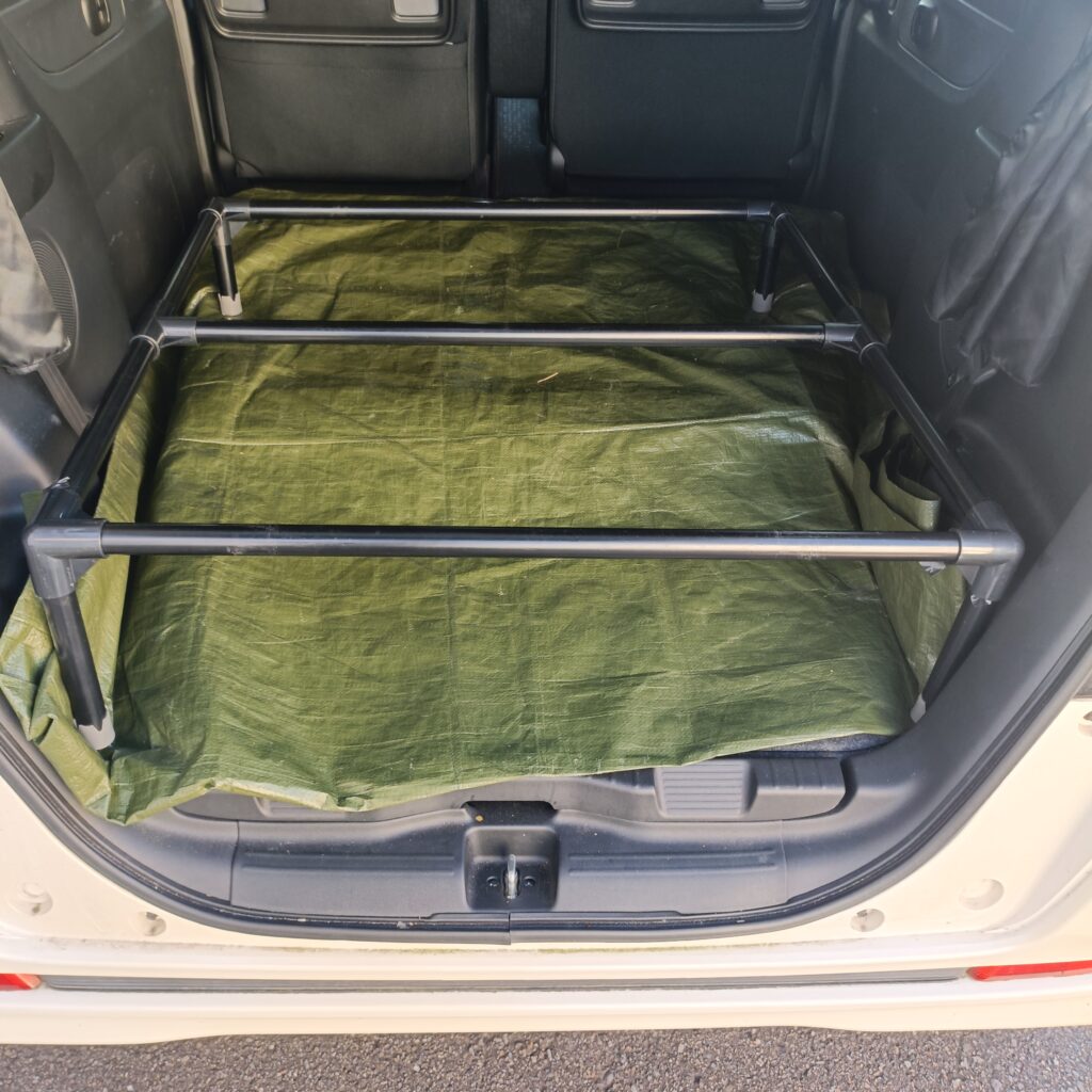車中泊のフラット化でイレクターパイプの台を組んだけど、使わない時の収納どうしよう