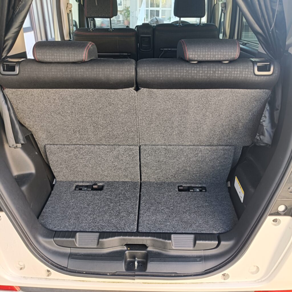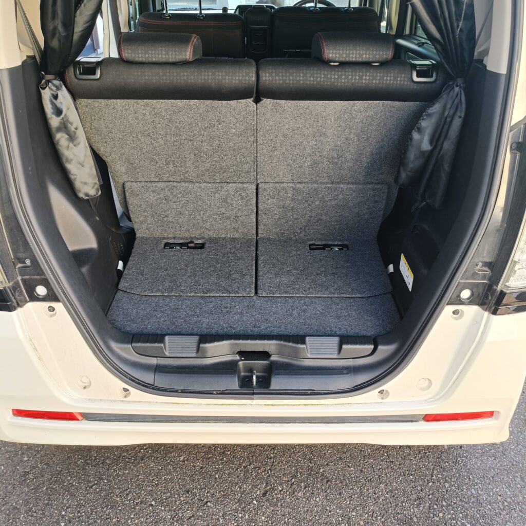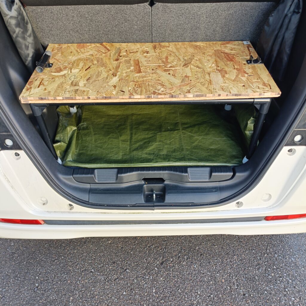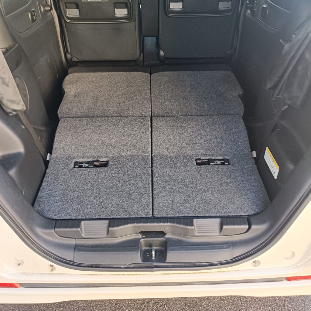 そこで、普段はトランクスペースを拡張する棚にしてしまおう!が今回のテーマになります。(以下、通常モード) *nboxで作りましたが、どの車種でも考え方は一緒なので是非参考にしてみてください