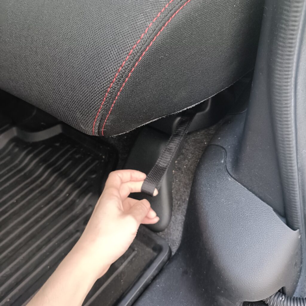 トランクルームを広く取りたいのでシートを前に引き出します シートを引いておきました