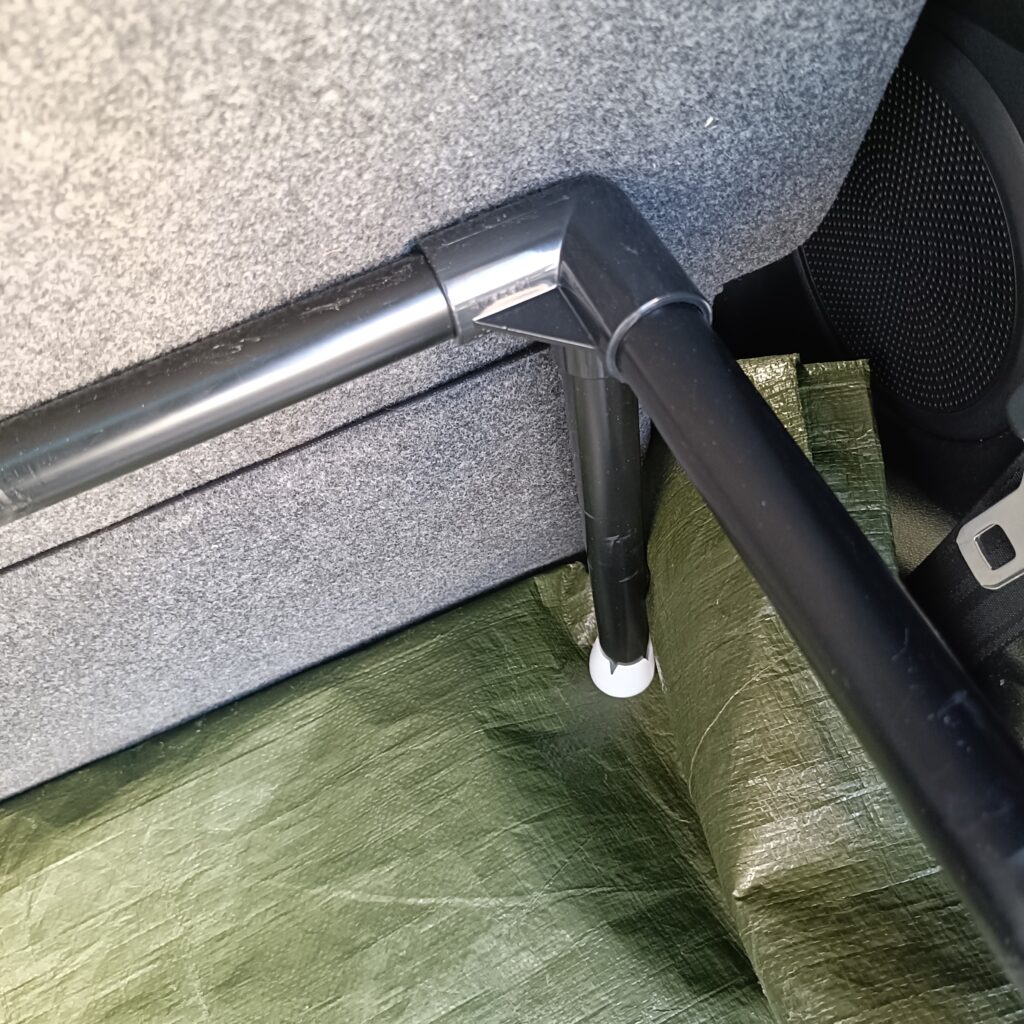 足を僕は30cmでカットしました。NBOX(JF-1)のトランクルームですと、 30cmにカットすると高さも確保でき、後部座席と干渉しなかった為です *お車のサイズに合わせて足の高さでパイプをカットして下さい